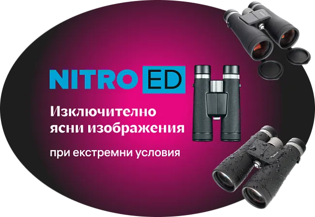 Лещите на биноклите Levenhuk Nitro ED са изработени от стъкло със свръхниска дисперсия (ED), което създава ясни изображения с висока разделителна способност без хроматични изкривявания. Дори най-взискателните потребители, които не желаят да изпускат нито един детайл, ще оценят моделите от тази серия. Корпусът на биноклите е херметично запечатан и напълнен с азот, което предпазва лещите от замъгляване. Има въртящи се чашки на окулярите, а разстояние от очите е достатъчно голямо за гледане са очила. Бинокълът може да се монтира върху триножник.